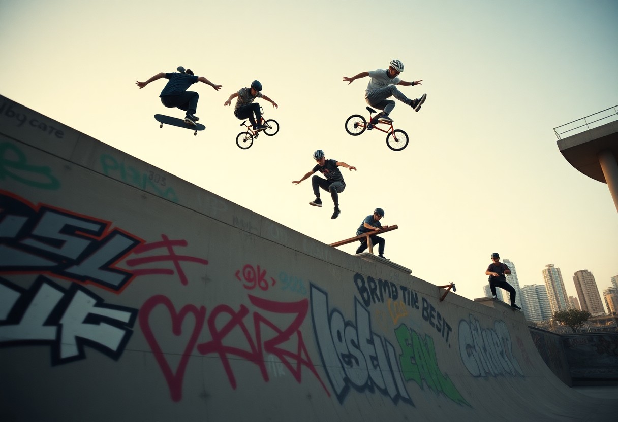 Lokalni parkovi, takmičenja i meetupi povezuju učesnike-događaji poput X Games ili regionalnih takmičenja okupe stotine do desetine hiljada posetilaca i stvaraju ekosistem sponzora i klubova; kroz to se gradi mentorstvo i razmena znanja, što povećava bezbednost i profesionalne mogućnosti, ali istovremeno podiže i pritisak za performans.